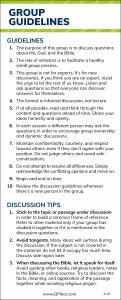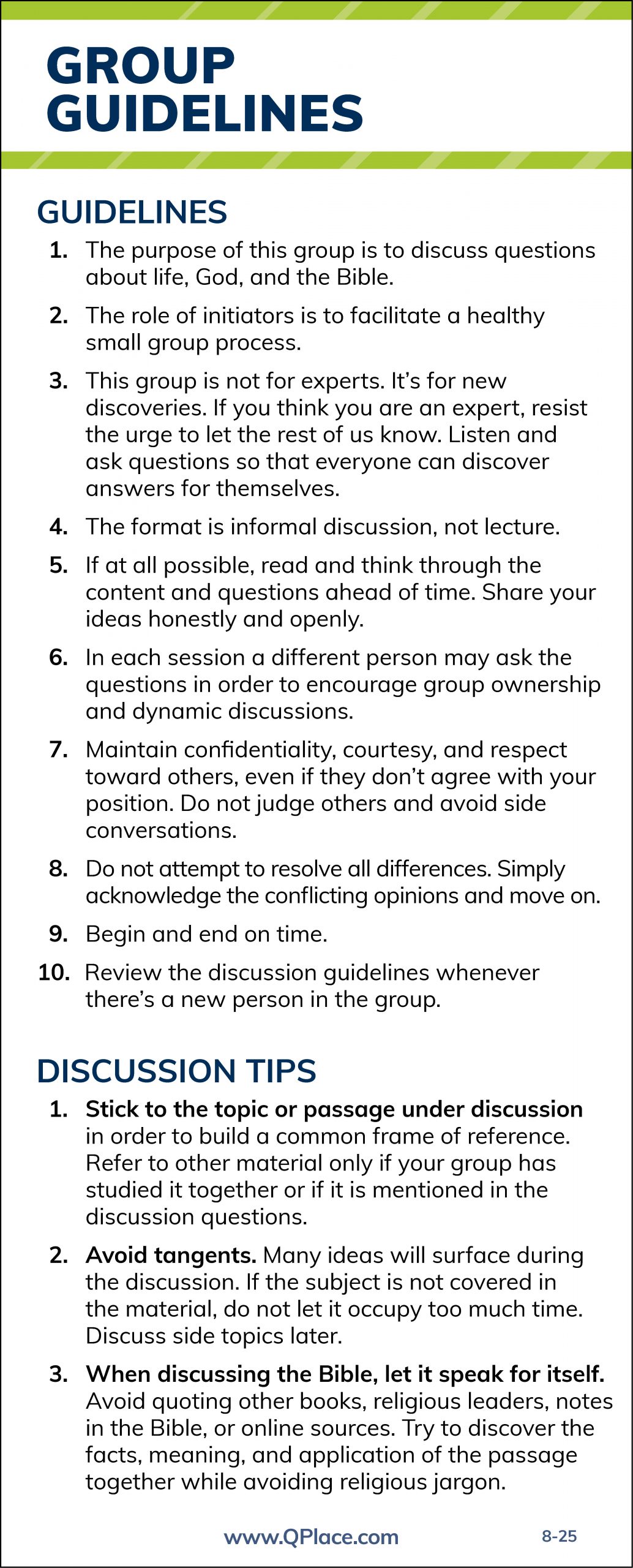 Group Guidelines are also included in the Getting Started section of Q Place Bible discussion guides.
